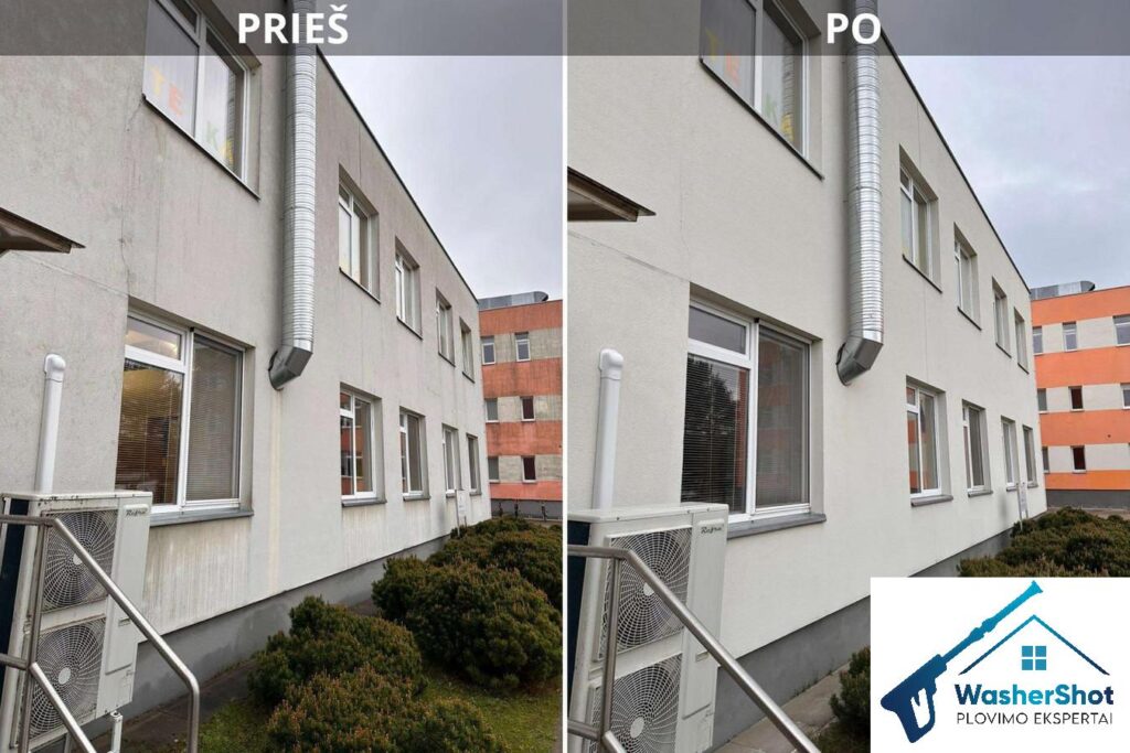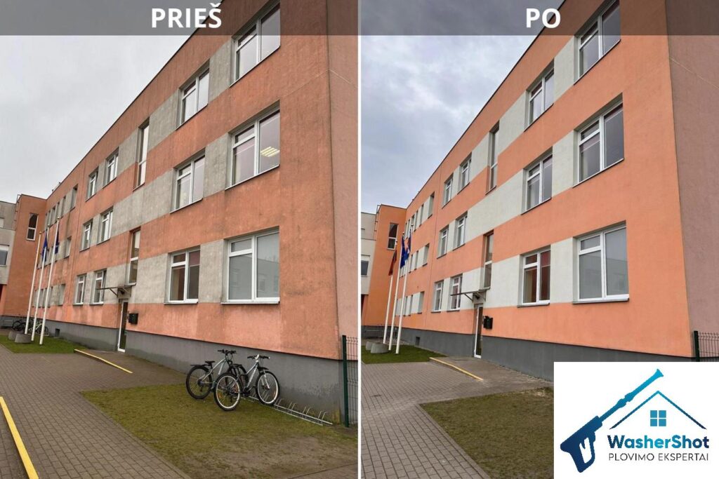 Kaune mokyklos fasado plovimas nenaudojant aukšto slėgio