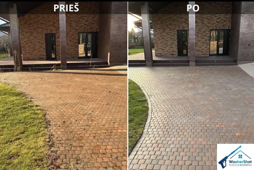 paviršius. Mūsų trinkelių plovimo ir trinkelių impregnavimo paslaugos teikiantys specialistai,
