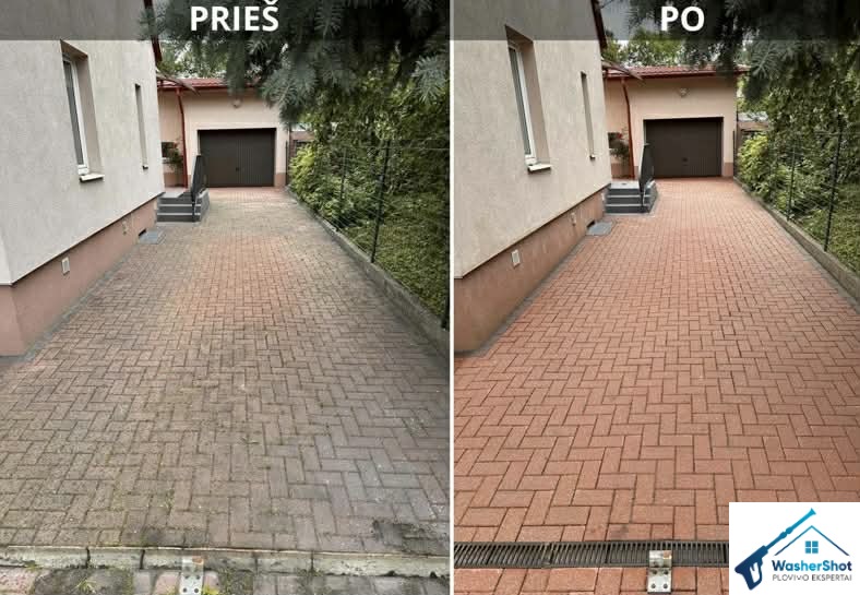 Kaip profesionalūs trinkelių plovėjai, naudojame aukščiausios klasės slėginio vandens